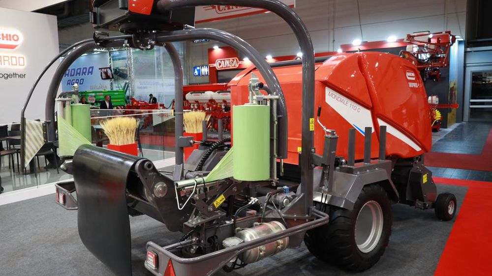 Maschio Gaspardo présentait à l’occasion d’Agritechnica 2023 un modèle supplémentaire dans la gamme de ses combinés presses-enrubanneuses. Baptisée « Mondiale 110 Combi », la machine se veut compacte, avec un centre de gravité bas idéal pour les opérations de récolte dans les régions vallonnées. Elle s’équipe d’un pick-up de 1,8 m et forme des balles de 1,1 m, en liage filet ou film plastique. La presse dispose d’une trappe de débourrage en cas d’obstruction liée à une grande quantité de marchandise. La Mondiale 110 Combi profite d’une compatibilité Isobus et d’un freinage pneumatique. Les réglages de travail sont gérés directement depuis la cabine et peuvent être automatisés. Ceux-ci concernent les fonctions de la presse à balles rondes (ramassage, pression des balles, liage, déchargement de la balle) et de l’enrubanneuse (nombre de tours de film, vitesse de rotation, déchargement).