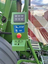 À l’occasion du lancement de cet ensemble, Krone améliore sa gamme de combinés presses-enrubanneuses à chambre fixe et à diamètre variable avec sangles et barrettes. Actuellement connus sous le nom « Komprima », ceux-ci seront renommés « Compack Pro ». Ce changement de dénomination ne s’accompagne pas de grosses évolutions : les caractéristiques, de même que le concept utilisant les sangles Novogrip, restent inchangées. Toutefois, un nouveau design plus racé et des améliorations font leur entrée. Le combiné peut désormais recevoir un système d’injection d’additif en option. Le réservoir et les conduits sont intégrés d’usine. Le produit est pulvérisé sur le fourrage par des buses entre le pick-up et le rotor. La quantité d’additif se règle depuis le terminal selon trois stratégies : en litres par balle, en litres par tonne de fourrage ou en litres par minute. Pour faciliter les interventions, un panneau de commandes est également installé à l’extérieur de l’enrubanneuse. Le chauffeur peut ainsi la piloter aisément et seul, en dehors de la cabine.