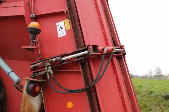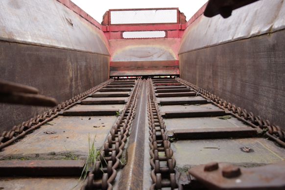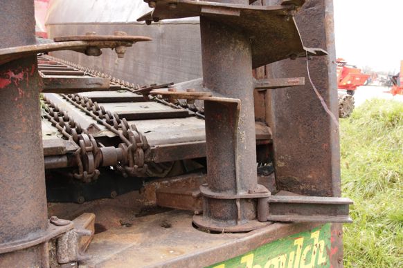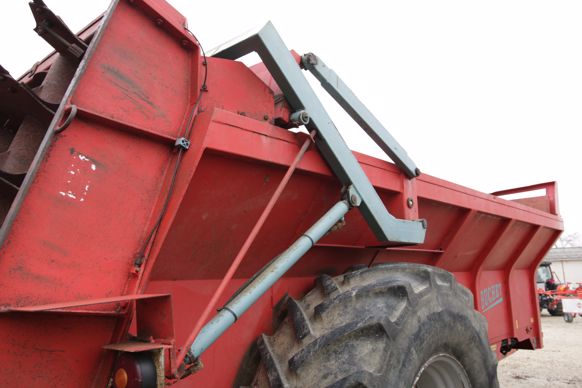 Les épandeurs à fumier sont des machines bénéficiant d’une construction relativement simple. L’ensemble de leurs composants gravitent autour d’une caisse, dont la mission est de contenir le fumier, mais aussi de jouer le rôle de châssis. Prenez donc le temps d’en inspecter les moindres détails. Traquez la corrosion et les éventuelles fissures, en particulier au niveau des soudures. L’un des épandeurs de notre concessionnaire présente de vilaines cicatrices, laissées par des dents de chargeur. L’une d’elles a même traversé la tôle, si bien qu’une plaque soudée par-dessus bouche le trou. Si ce genre de séquelles se localise rapidement, il traduit surtout un manque d’attention vis-à-vis du matériel lors de son utilisation. Au contraire, un épandeur comportant une caisse exempte de chocs, et des rehausses en bon état, laisse penser que son propriétaire en prenait soin. Jetez un coup d’œil sous la caisse et dans ses recoins. L’absence de matière à ces endroits indique que l’appareil a été correctement lavé. Dans le cas contraire, et au fil des années, le fumier resté au contact de l’acier peut l’avoir dégradé. Vérifiez la présence de l’échelle et que celle-ci ne soit pas tordue. En général, les épandeurs comportent une grille en haut de leur face avant afin de protéger le tracteur d’éventuelles projections de pierres par les hérissons. Inspectez l’état de cette grille et, lorsqu’elle est démontable, sa bonne fixation.