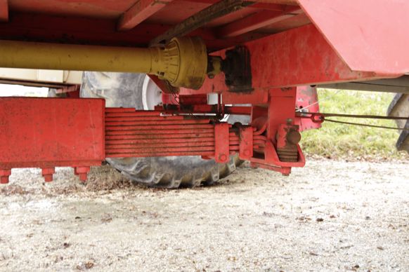 Pour vous simplifier la vie, commencez par l’avant de l’épandeur et suivez une progression logique jusqu’à l’arrière. Ainsi, vous ne passerez pas à côté de détails importants. Assurez-vous du bon état de la transmission à cardans et de celui de sa protection. Cette dernière doit être présente et immobilisée par des chaînettes. Les flexibles hydrauliques ne doivent pas présenter de craquelures importantes. Si leurs tresses métalliques apparaissent, ils devront faire l’objet d’un remplacement. Contrôlez aussi l’état et le serrage des raccords hydrauliques. Inspectez l’anneau d’attelage. Celui-ci ne doit pas être ovalisé à cause de l’usure. Son épaisseur peut aussi s’amenuiser avec le temps. Réclamez son remplacement si cette opération s’avère nécessaire. Dans certains cas, l’anneau est simplement boulonné. S’il est soudé, tournez-vous vers un professionnel qualifié pour ce remplacement. Scrutez ensuite l’articulation de flèche et assurez-vous que son axe soit en bon état et correctement graissé. Vérifiez la fixation des lames de ressort. Poursuivez jusqu’à l’essieu. Contrôlez la présence des brides de fixation de celui-ci et leur serrage. Assurez-vous de l’absence de fuite sur le circuit de freinage et de graisse dans les tambours de freins. À l’extérieur, vérifiez que la graisse ne s’échappe pas par le bouchon des moyeux de roues. Auscultez ces dernières en traquant d’éventuelles fissures dans les jantes. Observez minutieusement les pneus pour déceler des blessures qui pourraient conduire à leur éclatement, ou à une crevaison. Pensez à demander le certificat d’immatriculation si la machine a été mise en service depuis 2013. Pour le matériel plus ancien, il n’y a pas d’obligation d’immatriculation pour le moment.