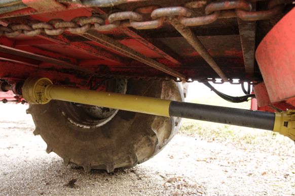 Le fond des épandeurs à fumier comporte un tapis constitué de chaînes et de barrettes. Ces dernières servent généralement de fusibles lors d’un blocage du tapis. Tordues, elles risquent d’endommager d’autres organes de l’épandeur, les hérissons par exemple. Prenez donc soin de contrôler l'état de ces barrettes et leur fixation sur les chaînes. Celles-ci doivent être bien parallèles à la paroi frontale de la caisse. Dans le cas contraire, une chaîne pourrait avoir rompu ou s’être décalée sur l’une des noix d’entraînement du tapis. Ces dernières s’usent et doivent faire l’objet de votre attention. Vérifiez que les mailles de chaînes, qu’elles soient rondes ou de type Vaucanson, descendent correctement au fond des créneaux des noix, dont les crêtes ne doivent pas être trop émoussées. Portez votre attention sur le moteur hydraulique et sur le réducteur animant le tapis. Traquez les fuites d’huile. Si l’avancement du tapis obéit à un boîtier électronique, effectuez un test en faisant varier la vitesse. Contrôlez aussi le fonctionnement du boîtier de débit proportionnel à l'avancement (DPA), lorsque l’épandeur en compte un.