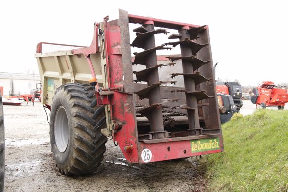 Plusieurs types d’équipements peuvent prendre place à l’arrière d’un épandeur à fumier. Dans le cas présent, nous nous intéressons aux hérissons verticaux. Au nombre de deux, ceux-ci arborent en général des spires hélicoïdales, sur lesquelles prennent place des couteaux visant à émietter le fumier. Jugez également du niveau d’usure de ces derniers. Si nécessaire, ils seront retournés ou remplacés. Contrôlez l’absence de ficelles entortillées autour des hérissons, au centre desquels les tubes ne doivent pas être marqués par la rencontre avec des corps étrangers. Inspectez le cadre en tôle autour de ces hérissons pour y déceler d’éventuelles détériorations dues à des coups ou à la corrosion. Portez une attention particulière au carter de fond, sous les hérissons. Du fumier ou de l’eau stagnante risquent d’attaquer la tôle et de la perforer. Là encore, un propriétaire méticuleux aura pris soin de laver cette partie après chaque utilisation. Sous ce carter, la transmission entraînant les hérissons compte plusieurs boîtiers à renvoi d’angle. Assurez-vous que ceux-ci ne présentent pas de fuite et contrôlez leur niveau d’huile grâce à l’œilleton prévu à cet effet. Inspectez les arbres de transmission qui passent sous la caisse. Ces derniers reposent en général sur des paliers, dont le graissage devrait faire l’objet d’un suivi régulier. Leurs protections doivent être en bon état et correctement fixées. La plupart des épandeurs intègrent une porte placée devant le cadre d’épandage, interdisant la chute de fumier pendant le transport. Demandez au vendeur d’effectuer quelques cycles d’ouverture et de fermeture. En effet, il n'est pas rare que les glissières ne soient plus parfaitement rectilignes et gênent les mouvements de la porte. Par ailleurs, de la matière accumulée à l’intérieur de celles-ci peut provoquer le blocage du mécanisme. Profitez de ce test pour faire tourner les hérissons à plein régime afin de vous assurer qu’ils sont correctement équilibrés.