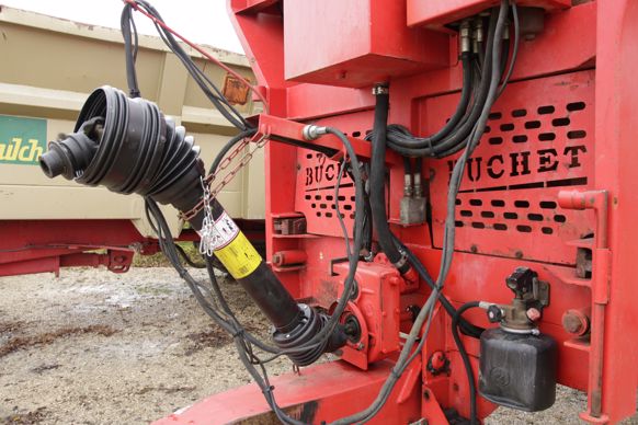 L’un des épandeurs sélectionnés par notre concessionnaire provient du constructeur saône-et-loirien Buchet et présente la particularité d’intégrer une paroi frontale accompagnatrice, évitant au tas de fumier de s’ébouler pendant l’épandage. Le tapis tire cette paroi jusqu’aux hérissons pendant le travail et, lorsque l’épandeur est vide, l’ensemble repart dans l’autre sens pour reprendre sa position initiale. Les chaînes du tapis sont donc sollicitées dans les deux sens. Elles ne comportent des barrettes que sur la partie supérieure du tapis, à l’intérieur de la caisse. En dessous, seules quelques barres maintiennent l’écartement entre les chaînes. Contrôlez simplement leur état. Inspectez les noix, de la même façon que pour un épandeur standard. Assurez-vous que l’étanchéité entre la paroi accompagnatrice et la caisse soit bien assurée par des racleurs en caoutchouc. La linéarité des parois s’avère encore plus importante sur ce type d’épandeur. Le système DPA développé par Buchet repose sur un unique peson, placé au niveau de la fixation des lames de ressort de la flèche. L’idéal serait de réaliser un essai afin de contrôler le fonctionnement du dispositif de pesée et du boîtier de contrôle.