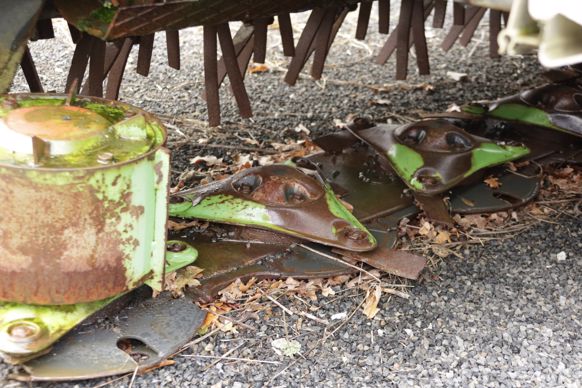Les faucheuses Deutz-Fahr DiscMaster proviennent des chaînes de fabrication Vicon et bénéficient des huit assiettes triangulaires dotées de trois couteaux, spécifiques à cette marque. Le remplacement de ces pièces d’usure ne requiert pas d’outil. Le constructeur fournit un levier adapté à cette opération. Assurez-vous de sa présence. Traquez les fuites d’huile au niveau des paliers des assiettes. La présence de ficelles ou de fils de fer n’est jamais bon signe : leur frottement endommage rapidement les joints autour des axes de rotation des assiettes. Vérifiez également que le carter du lamier n’a pas subi de choc assez violent pour causer des déformations. Inspectez les assiettes. Avec le temps, celles-ci s’usent et leur remplacement peut s'avérer nécessaire. Il est possible aussi de les intervertir afin d’inverser leur sens de rotation pour les user sur l’ensemble de leur surface.