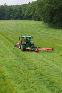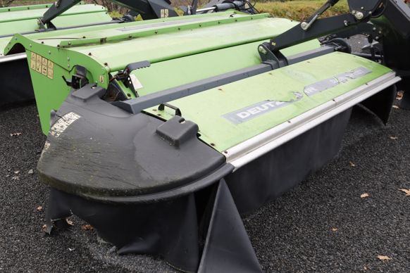 Deutz-Fahr présente en France une gamme de machines de fenaison issue d’un partenariat avec le groupe Kverneland. La faucheuse DiscMaster 632T est identique à la Vicon Extra 632T. Elle en reprend l’originale cinématique de suspension, avec un groupe de fauche suspendu et tiré. L’effacement devant un obstacle est permis par le vérin de suspension. Le lamier recule et se soulève, puis revient automatiquement en position. La pression au sol se règle à l’aide d’un manomètre situé dans le bras supportant le lamier. L’opérateur doit simplement ouvrir une vanne et moduler la pression avec le distributeur à simple effet normalement assigné au relevage du lamier. Un second distributeur, à double effet, sert au dépliage-repliage de la faucheuse. La DiscMaster reprend également à la Vicon Extra ses assiettes triangulaires à trois couteaux. Selon son fabricant, cette caractéristique permet une plus grande vitesse d’avancement.