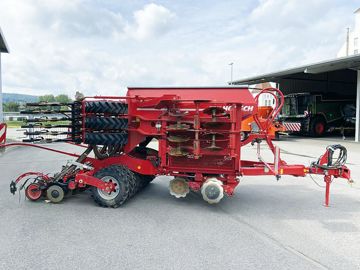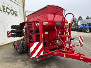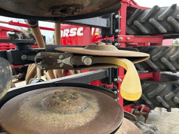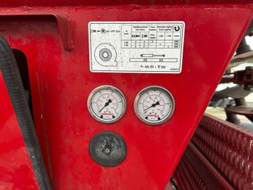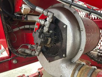 La distribution pneumatique du Horsch Pronto a bonne réputation. Il est cependant conseillé d’atteler le semoir et de le mettre en marche avant tout achat. Vérifiez le bon fonctionnement du doseur à entraînement électrique et du système de soufflerie entraîné hydrauliquement. Dans le même temps, contrôlez l'état des deux manomètres situés à l’avant du semoir. Le premier concerne la pression de maintien des éléments du châssis du semoir une fois déplié. Ce rappui hydraulique, réglable pour le suivi du terrain avec une boule d’azote, se teste en faisant fonctionner le distributeur hydraulique. Si la pression varie et ne retombe pas, le système est opérationnel. Le second manomètre témoigne quant à lui de la pression du moteur de la soufflerie. Examinez l’état du joint en polyéthylène qui fait l’étanchéité du doseur au niveau de la trappe de vidange. Son accès, permettant aussi le changement de cannelures, est facilité par les quatre faces démontables à l’aide de papillons. Pour vous rassurer, il est également préférable d’effectuer une simulation d’étalonnage du doseur. Le branchement de l’ensemble des flexibles du Pronto sera, pour sa part, l’occasion de contrôler l’état du système hydraulique pour le repliage de l’outil et les réglages de profondeur.