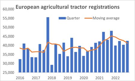 Malgré les difficultés rencontrées par les chaînes d’approvisionnement en 2022, la demande de tracteurs et d’autres machines agricoles en Europe demeure soutenue. Cela s’explique par des prix élevés des produits agricoles pendant l’année, conséquence de la vague de chaleur et des conditions sèches survenues tout l’été.