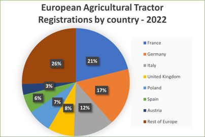 En revanche, pour les tracteurs agricoles plus puissants, le total annuel était supérieur de 3,7 %. Ces machines de plus grande taille représentaient 39 % des immatriculations européennes en 2022, contre 35 % en 2021.