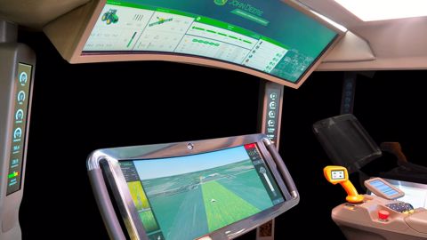 L’ambiance sur le stand John Deere se voulait elle aussi futuriste : murs et sol blancs, staff vêtu d’habits argentés tels des astronautes. Cet espace circulaire regroupait des concepts, mais pas que. Les visiteurs pouvaient découvrir le « Joker », un ensemble tracteur-outil autonome pour le déchaumage déjà bien visible sur les réseaux sociaux des concessionnaires John Deere. La marque américaine présentait également une cabine ornée d’écrans à la place du volant et en guise de pare-soleil, ou encore un capot avant de tracteur muni de capteurs pour une conduite semi-autonome. Un immense drone de plusieurs mètres d'envergure, propriété de la start-up VoloDrone, trônait au centre de ce stand. L’objectif d’un tel aéronef : remplacer l’hélicoptère pour les traitements et apports de produits phytopharmaceutiques en agriculture et viticulture, dans les pays où la législation l’autorise. Un autre robot de pulvérisation, terrestre cette fois-ci, reposait sur quatre chenilles et un châssis capable de se relever hydrauliquement. Selon John Deere, il peut assurer des traitements sur des maïs en fleurs, et ce, sans l’intervention de l’homme.