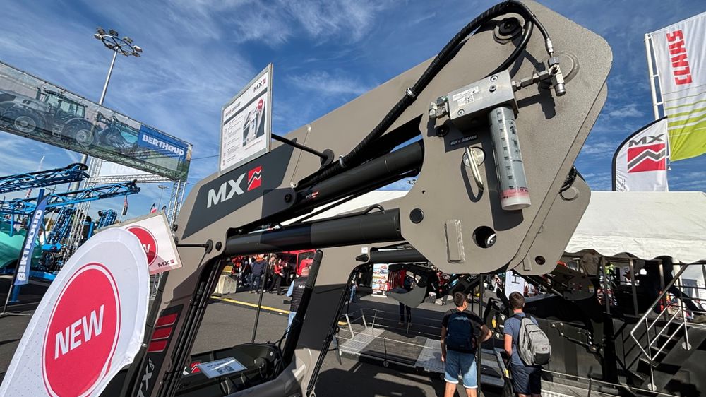 Le breton MX rend l’entretien plus aisé sur ses chargeurs frontaux avec l’AutoGrease. Ce graissage centralisé équipe pour l’instant les gros chargeurs de la série TX 400. Il se compose des différents flexibles reliant les axes du chargeur, d’une cartouche vissable à gauche du brancard et d’un connecteur situé dans un des vérins du bennage/cavage. Ainsi, à chaque butée de cavage de l’outil, une quantité définie est envoyée dans les axes du chargeur. Trois répartiteurs assurent de répartir la bonne dose de graisse selon les besoins et la tailles des axes. MX conserve néanmoins des points de graissage manuel sur son chargeur ainsi qu’un graisseur principal à côté de la cartouche de graisse.