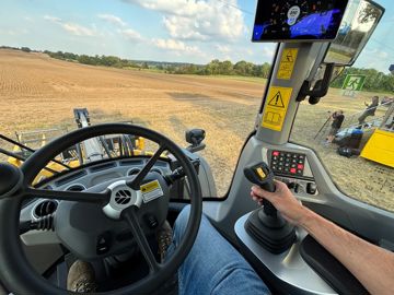 Côté transmission, la boîte powershift à six vitesses autorise une conduite à 40 km/h et s’offre ainsi une vitesse de plus que la version classique. L’ensemble repose sur un essieu avant doté d’un différentiel autobloquant et sur un train arrière à glissement limité. En cabine, le chauffeur prend place sur un siège pneumatique et retrouve un écran tactile de 8”. Il peut conduire au volant ou grâce à deux joysticks, de part et d’autre du siège, celui de gauche étant dédié à la direction. Côté visibilité, le conducteur bénéficie d’un éclairage à Led et d’une caméra arrière.