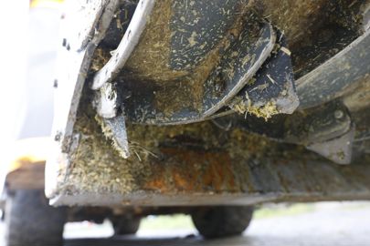 La fraise de désilage constitue l’un des éléments les plus importants d’une mélangeuse automotrice. En effet, elle conditionne la préparation des aliments avant leur incorporation dans la ration. Elle doit aussi former un front d’attaque net dans les silos afin d’optimiser la conservation de l’ensilage. Soumise à d’importants efforts, elle sera donc au centre de toutes les attentions. Paliers, roulements, moteur hydraulique, carters de protection, vous devez vérifier chacun de ces éléments. Faites tourner la fraise et traquez les bruits suspects, révélateurs d’une pièce en fin de vie. L’écran de contrôle de la Lucas G Autospire autorise plusieurs réglages de vitesse mémorisables pour la fraise, en fonction du type de matière chargée. Pensez également à évaluer le niveau d’usure des couteaux de la fraise. Ceux-ci arborent une forme courbée, donnant plus d’agressivité. Si ces éléments devaient faire l’objet d’un remplacement, ceci peut peser dans les négociations avant la vente.
