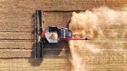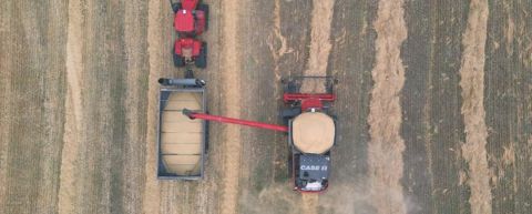 Pour le nettoyage, le caisson double fait son apparition. Ce dernier multiplie tout simplement par deux le nombre d’éléments d’un caisson traditionnel composé de deux tamis supérieurs, deux tamis inférieurs, et deux vis sans fin pour le grain propre et deux ensembles de capteurs de pression pour mesurer la charge sur la partie avant et arrière. Une multiplication par deux de la surface de nettoyage pour compenser une augmentation de l’afflux de grain. La marque a pour ambition, grâce à une automatisation totale du nettoyage pour maintenir une bonne répartition transversale couplée à l’optimisation des réglages, de n’afficher aucune perte aux grilles. Le système se veut capable d’affronter des dévers jusqu’à 13° sans perdre en efficacité. L’automatisation des réglages AFS Harvest Command est installée de série. Le chauffeur choisi entre 4 stratégies d’optimisation et la machine adaptera elle-même les réglages en conséquence et en continu grâce aux caméras d’analyse. Le grain propre est ensuite transféré vers une trémie dotée d’une capacité de 20 000 l dont la vidange s’effectue au rythme impressionnant de 210 L/seconde. À noter qu’une seconde vitesse de vidange est sélectionnable pour finir de remplir une remorque avec précision par exemple.