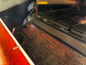 Le récupérateur de menues-pailles équipe à ce jour la deuxième New Holland CX 6.90 acquise par le Gaec des Anchottes. Celle-ci se dote de quatre roues motrices, contrairement à leur précédente moissonneuse-batteuse. « Avec notre ancienne machine, le poids d’environ 2 t du récupérateur, qui reposait sur l’arrière de la moissonneuse, était une contrainte, se souvient Loris Denizot. En conditions humides, ses roues arrière s’enfonçaient, et à l’avant elles patinaient jusqu’à s’enliser. Aujourd’hui, le poids du récupérateur est, à l’inverse, bénéfique pour le pont arrière moteur en donnant de l’adhérence à la CX ! » Concernant la conduite et le gabarit, Loris affirme que le récupérateur Thiérart ne surcharge pas la moissonneuse-batteuse en puissance requise : « Je le vois bien à l’ordinateur de bord, je ne suis jamais à 100 % de charge et je ne consomme pas beaucoup plus avec le récupérateur en marche. » La maintenance quotidienne, quant à elle, se résume à deux graisseurs et à la vérification du niveau d’huile dans le réservoir auxiliaire. Une fois par an, l'agriculteur change les grilles. Il possède un premier jeu pour le maïs et un second pour toutes les autres cultures.