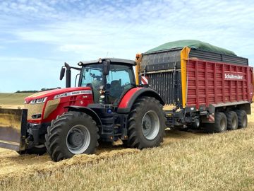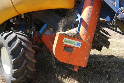 En 2016, l’exploitation se diversifie et monte une unité de méthanisation en cogénération par voie solide, dotée d’un moteur de 180 kW. Aujourd’hui, l’intégralité des 450 t de menues-pailles récoltées chaque année est vouée à la méthanisation. L'agriculteur récupère également des menues-pailles lorsqu’il moissonne les champs de son oncle. « Les premières années, nous avons essayé de valoriser les menues-pailles dans des élevages de volailles et de bovins, pour faire les litières, raconte-t-il. Mais cela faisait trop de volume pour les éleveurs, et nous n’arrivions pas à écluser notre stock. Cela nous obligeait également à andainer et à presser les menues-pailles au bout des champs. » L’arrivée de la méthanisation est ainsi apparue comme une aubaine pour l’exploitation. « Le son est par ailleurs très méthanogène », fait-il remarquer. Cependant, l’acheminement des menues-pailles jusqu’au méthaniseur demande une certaine logistique, entraînant un ballet de matériels. « Lorsque je moissonne, je vide mon caisson au bord de ma parcelle. Nous ramassons ensuite les tas à l’aide du pick-up de notre autochargeuse Schuitemaker à trois essieux, dont le volume de caisse affiche 60 m3 DIN. Nous enlevons les couteaux au niveau de l’ameneur rotatif pour garantir un bon flux de transfert dans la caisse, que nous réussissons à remplir avec 6 à 11 t de matière. Cela correspond à 8, voire 10 ha parfois ! À l’aide du chariot télescopique, nous raclons les restes derrière l’autochargeuse, puis nous repassons dans toutes les parcelles avec le chariot et chargeons les restes dans des bennes. Les menues-pailles sont ensuite stockées à l’extérieur, en tas, sous des bâches », détaille Thomas Courageot, avant de souligner : « Notre objectif pour chaque parcelle est de ramasser les menues-pailles avec l’autochargeuse dès que le champ est moissonné. Nous venons ensuite charger les restes plus tard, avant de déchaumer. »