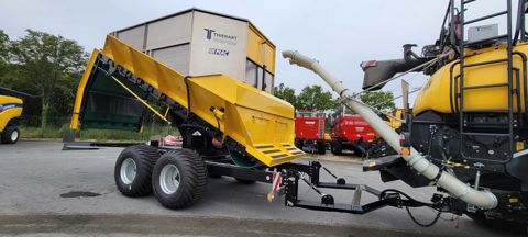 Aux yeux des frères Lecoq, l'un des principaux atouts du système de turbines dont se dote la remorque Thiérart est d’être entièrement démontable. « Nous l’avons retiré l’an dernier pour le maïs », confirme Pascal Lecoq. Les deux turbines qui le composent sont positionnées en lieu et place des éparpilleurs de la CR. Elles collectent la menue-paille puis l’acheminent par deux tuyaux jusqu’à la trémie de la remorque, derrière la machine de récolte. « Ce sont des tuyaux de meunier, sans aspérité à l’intérieur, pour ne pas ralentir le flux », détaille l’entrepreneur. La remorque possède une capacité de 20 m3, soit environ 1 ha. Elle se compose d’un tapis convoyeur et d’un démêleur évitant que la menue-paille ne se compacte en activant un vilebrequin. « Il y a des cycles prédéfinis de fonctionnement du tapis et du démêleur, en alternance, pour optimiser leur fonctionnement. Si les conditions ne sont pas bonnes ou que la parcelle est trop verte, j'allonge le temps de fonctionnement du démêleur », rapporte Gildas Lecoq.