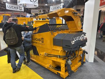 Le constructeur français Lucas G profitait du salon Agritechnica pour présenter sa pailleuse compacte Raptor. Cette version portée est exclusivement dédiée aux engins de manutention tels que les petites chargeuses articulées et les chariots télescopiques compacts. Son poids à vide affiche une masse totale de 550 kg. Sa caisse accepte soit une balle ronde d’un diamètre maximal de 1,5 m ou une demi-balle carrée de section 120 x 90 ou 120 x 130 cm. Un démêleur à disques dentés fournit un flux régulier vers la turbine de la Raptor composée de 5 pales mécanosoudées. Un contre couteau positionné juste en sortie de turbine au niveau de la conduite guidant la paille vers la goulotte assure une alimentation sans paquet pour une projection sas bourrage annonce le fabricant. Cette dernière, orientable, se contrôle depuis le poste de conduite du valet de ferme via un joystick dédié. L’interface d’attelage sur le châssis de la Raptor est boulonnée.