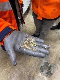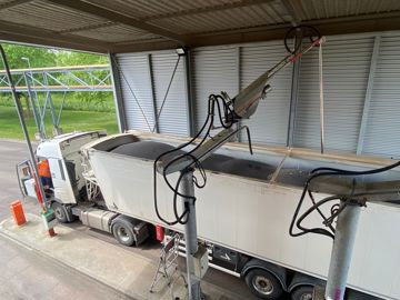 À l'entrée de l'usine de trituration de Saipol, filiale du groupe Avril(1), les camions chargés du colza produit à moins de 250 km du Mériot, dans l'Aube, se suivent de près. Ils représentent 80 % des flux d'approvisionnement, le train transportant les 20 % restants. Chaque remorque est pesée, puis la qualité du chargement est analysée après une prise d'échantillon : taux d'impuretés, taux d'huile, taux d'humidité… Seuls 1 % des camions sont refusés pour non-conformité. Environ 4 500 t de colza sont réceptionnées quotidiennement, et ce, cinq jours par semaine. Les grains sont stockés dans quatre silos d'une contenance de 6 000 t chacun afin d'assurer l'approvisionnement de l'usine de trituration dont la capacité atteint 3 000 t par jour. La production est continue, sept jours sur sept. Avant d'être traités, les grains de colza (qui contiennent 45 % d'huile) sont d'abord nettoyés des impuretés restantes. Ils sont ensuite préchauffés à 50 °C puis aplatis par des floconneuses. Les flocons obtenus sont chauffés à 100 °C afin d'en extraire l'huile grâce à des presses. Celle-ci est ensuite raffinée par centrifugation.