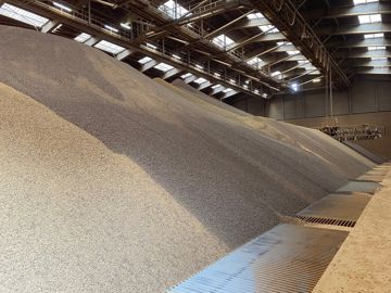 À destination de l'alimentation animale, les tourteaux issus de la trituration sont stockés à plat dans un hangar d'une capacité de 15 000 t. Ils partiront approvisionner les clients à 75 % par camion, à 15 % par train et à 10 % par péniche sur la Seine. « Chaque année, 940 000 t de colza sont transformées au sein de l'usine, explique Jérôme Landréat, directeur du site du Mériot. Elles permettent de produire 510 000 t de tourteaux pour l'alimentation animale, 220 000 t de biodiesel (B7 et B100), 20 000 t de glycérine végétale (pour l'industrie cosmétique, la chimie, la pharmacie, l'alimentation…), 210 000 t d'huile brute pour la cuisine et 3 000 t de lécithine de colza (ingrédient dans l'alimentation animale et humaine). »