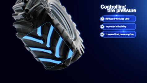 L’Adaptive Tire Management System (ATMS) de Trelleborg se présente sous la forme de capteurs embarqués, collés dans l’enveloppe des pneumatiques du tracteur. Ceux-ci collectent des informations relatives à la charge dynamique, à la pression et à la température de chaque pneu. Combiné avec un dispositif de télégonflage, l’ATMS permet d’optimiser la pression et d’exploiter au mieux les capacités du tracteur et de ses pneumatiques. Trelleborg annonce une économie de carburant possible de 4 % par rapport à un concurrent premium. Ce système offre également une meilleure conduite sur route grâce à une configuration appropriée du tracteur.