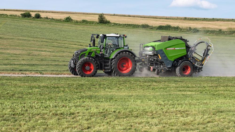 Changer en un coup de clé la bobine de film ou de filet, telle est la prouesse de Fendt sur sa presse à balles rondes Rotana 130 F ainsi que sur sa presse-enrubanneuse 160 V Combi. Ces dernières reçoivent à l’avant de la chambre de pressage un barillet pouvant contenir trois bobines de type filet et/ou film plastique pour assurer le liage de la balle.