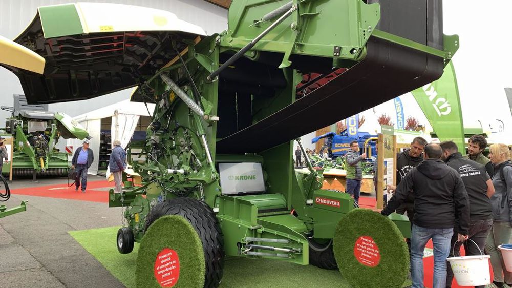 Krone sécurise l’éjection des balles rondes pour les travaux dans les pentes ou en zone de montagne. Son reteneur, pouvant être monté sur les presses à chambre variable à courroies VariPack et VariPack Plus, se compose d’une pince qui vient se monter en lieu et place de l’éjecteur de balles. Celle-ci se pilote hydrauliquement depuis la cabine, via un distributeur à simple effet. À l’ouverture de la porte, la balle est directement retenue par la pince, ce qui l'empêche de rouler dans la pente. Le chauffeur ne perd pas de temps à manœuvrer, sécurise son travail et augmente ainsi son débit de chantier. Ceci répond à un problème connu dans les parcelles en dévers, où le chauffeur doit se montrer très précautionneux pour déposer sa balle afin d’éviter qu’elle prenne de la vitesse et s’échappe.