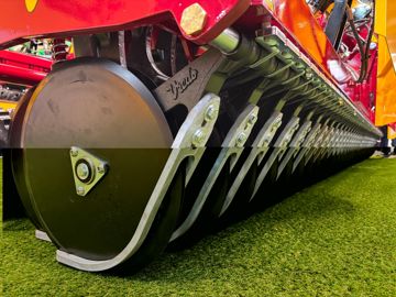 La ligne de semis est disposée sur deux rangées de doubles disques, avec un écartement de 7,5 cm en plein pour le sursemis et de 15 cm pour le semis direct. Dans cette configuration, un rang sur deux est relevé hydrauliquement. Pour semer différentes espèces ou apporter de l’engrais à des profondeurs différentes, la pression d’une des deux rangées de semis est réglable manuellement. Les semoirs offrent une plage de densité de 1 à 350 kg/ha. Les réglages s'effectuent via un écran couleur de 5” ou depuis le terminal du tracteur en option.