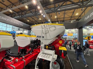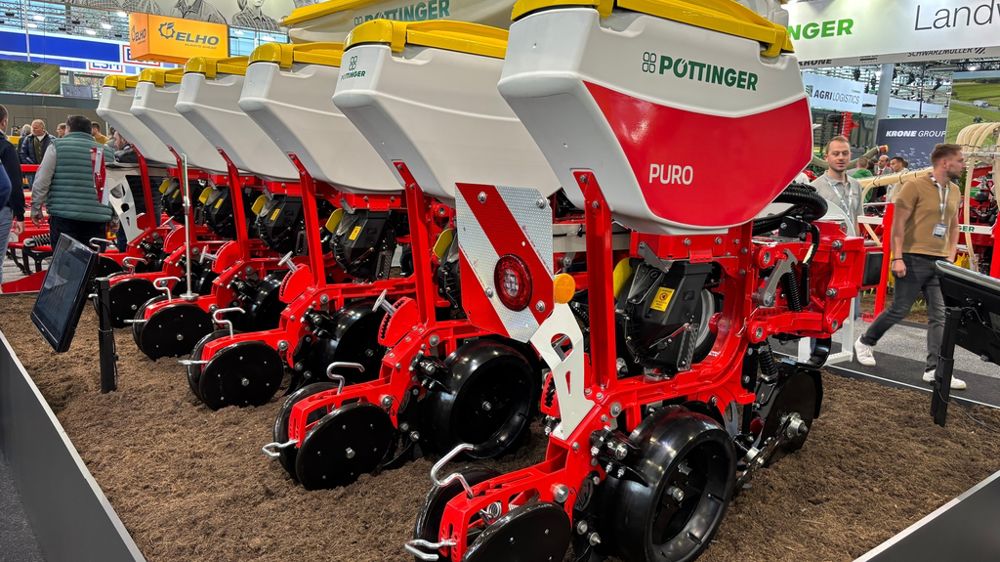 Pöttinger présente pour la première fois au public son semoir monograine Puro H 3000. Cette arrivée dans la gamme fait sens après le rachat, en 2022, de l'entreprise MaterMacc, fabricant italien de matériels de semis. Le Puro se destine aux exploitations souhaitant un outil simple. Il se décline pour l’instant en un seul modèle de six rangs avec un écartement de 75 cm. Cette présérie dispose d’une trémie principale de 1 300 L pour l’engrais et de trémies de 68 L prenant place en haut des éléments. Elle offre une vitesse de travail allant de 6 à 8 km/h, voire 9 km/h selon les conditions.