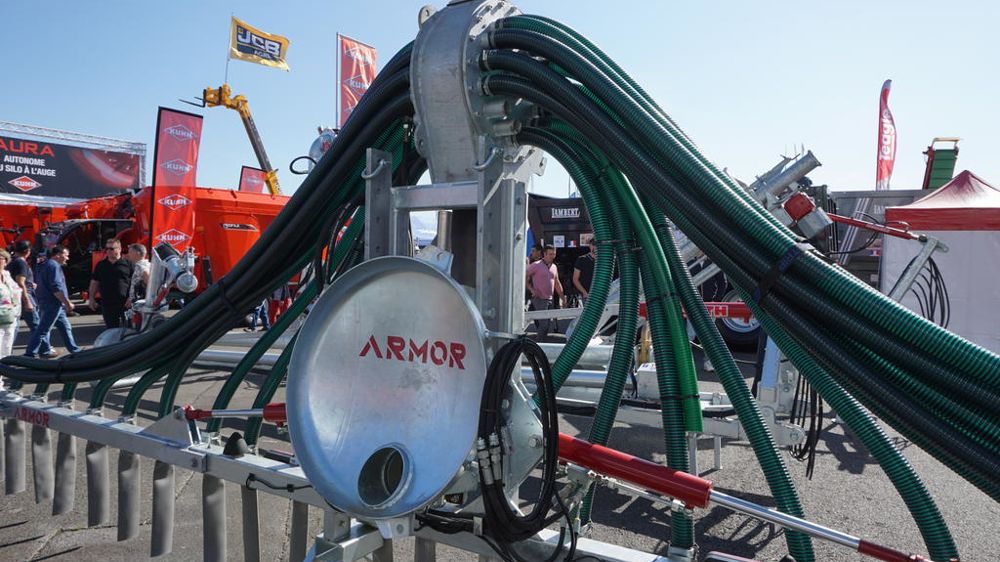 Le Breton Armor complète son offre en équipements arrière pour tonne à lisier avec une rampe à pendillards de 7,5 m. Celle-ci se démarque par son montage, qui s'effectue directement sur la trappe arrière de la tonne à lisier. Une prédisposition du relevage n’a donc pas son utilité. Cette rampe d’épandage dispose d’une turbine de broyage de série et de tuyaux d’alimentation de 50 mm de diamètre. L’ensemble implique deux distributeurs à double effet et un branchement électrique pour l’éclairage routier.