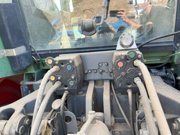 Quant à l'hydraulique, Fendt a équipé son tracteur de ce qui se faisait également de mieux dans ce domaine. C’est ainsi qu'une pompe à débit variable load sensing (LS) prend place sur l’engin. Celle-ci délivre un débit maximal de 102 L/min à 200 bar. Elle alimente quatre distributeurs de série ainsi que les relevages avant et arrière, pour des capacités respectives de 5 100 et 9 180 kg. Le débit de chaque distributeur peut s'ajuster en cabine de 16 à 80 L/min, à l’aide d’une molette.