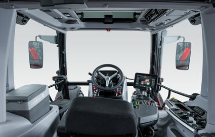 Le Lintrac 160 arrive avec une nouvelle cabine à 6 montants suspendue pneumatiquement. Cette dernière offre 30 % de volume en plus que celle du Lintrac 130. Sur le nouveau siège chauffé et ventilé, le chauffeur trouvera un accoudoir multifonction inédit pour la marque. Celui-ci est en effet pourvu d’un terminal tactile de 10’’ à son extrémité pour piloter les différents éléments du tracteur. Il conserve tout de même le joystick LDrive configurable, connu sur le reste de la gamme Lintrac. Des fingertips pour l’hydraulique prennent également place sur l’accoudoir. Le vitrage reçoit un traitement spécial pour réduire le bruit ressentit par le chauffeur, mais également les éblouissements et l’effet four lors des journées de travail ensoleillées sous la chaleur. La cabine offre par ailleurs une climatisation avec un mode automatique.