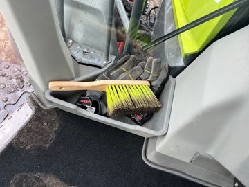 Si j’avais des gants, un couteau ou autre, je les aurais déposés dans un petit bac aimanté au plancher à l’entrée de la cabine contre le pare-brise pour éviter qu’ils ne se baladent de part et d’autre.
