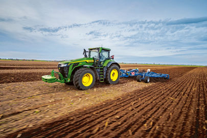 Dotés du moteur maison JD14 de 13,6 L, ces tracteurs fournissent jusqu’à 2 695 Nm de couple, une plage de puissance étendue et une capacité de traction pensée pour les gros travaux. Les 8R 440, 8R 490 et 8R 540 affichent des puissances maximales respectives de 484, 539 et 594 ch. Avec la surpuissance, leurs moteurs atteignent respectivement 524, 579 et 634 ch.
