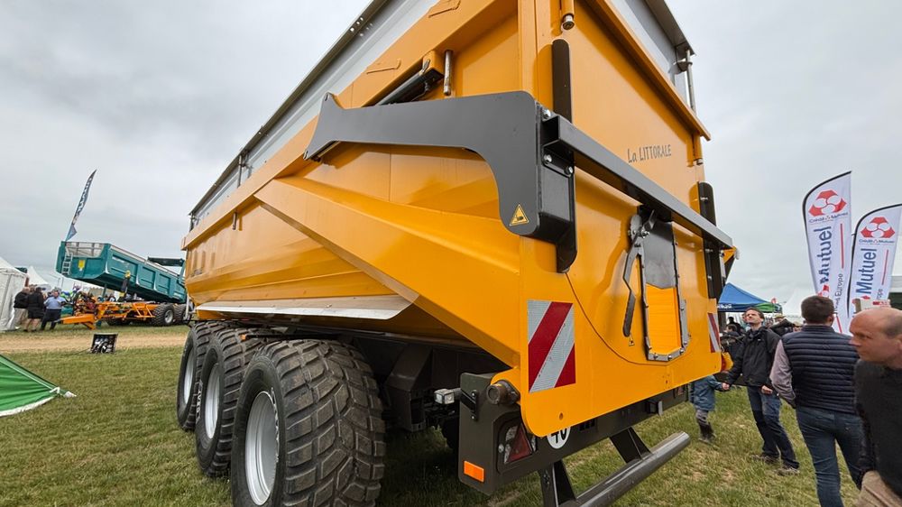 Les bennes monocoques de la gamme Concept représentent, selon le constructeur AMBS La Littorale, les remorques les plus légères du marché en termes de poids à vide. Pour asseoir ce gain de poids, le fabricant pas-de-calaisien proposait sur le modèle exposé au salon Innov-Agri, une C320, de 32 t de PTAC, une porte sans cadre. Cette dernière se veut encastrée dans la forme semi-cylindrique de la caisse afin d’assurer l’étanchéité. Pour garantir une ouverture complète générant moins de contrainte, les bras de porte maintiennent celle-ci par le bas. Autre innovation sur le stand du constructeur : une remorque dédiée à la récolte des pommes de terre ou des légumes avec une caisse de 9 m de long. Les parois de 1,3 m de hauteur bénéficient de rehausses avec des ridelles de 40 cm à assistance hydraulique.
